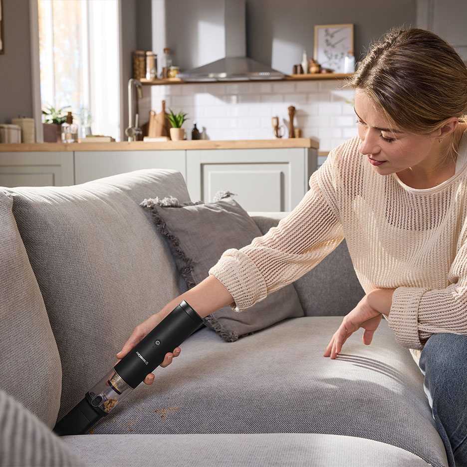 Βρωμιά, ακάρεα, τρίχες ζώων κ.λπ. κρύβονται συνήθως βαθιά μέσα στο ύφασμα του καναπέ ή της πολυθρόνας. Για να τα απομακρύνεις, είναι καλύτερο να χρησιμοποιείς οικιακές συσκευές υψηλής απόδοσης